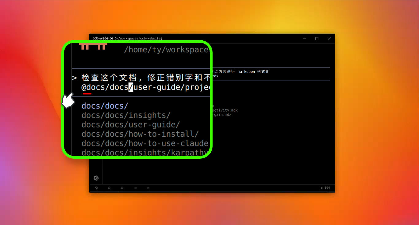 当我们需要指挥 Claude Code 处理具体的文件时,我们通常会输入 @ 符号来引用那个文件或目录。